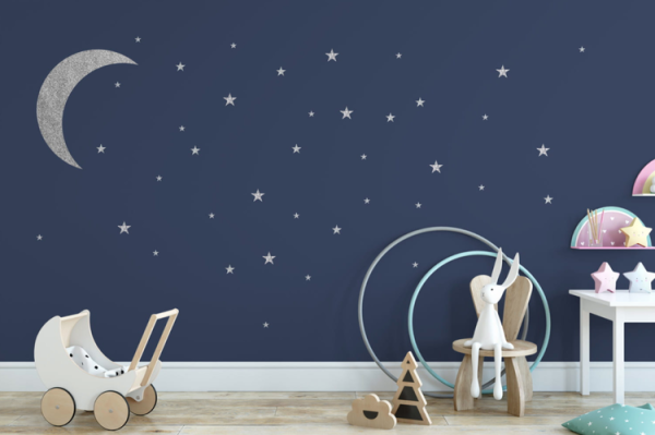 Babylove, väggklistermärke silver måne med stjärnor