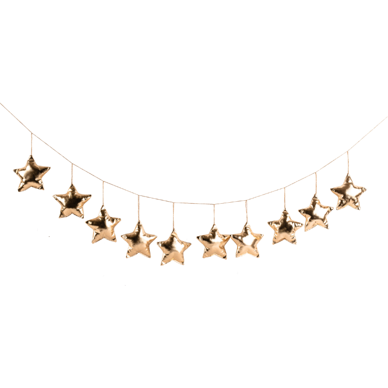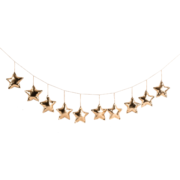 Tio stycken vackert skimrande stjärnor är redo att snabbt förändra ditt barns rum på en massa olika sätt. Vimplar tillhör bland de mest effektiva man kan använda när det är dags att inreda barnrummet. I sin enkelhet gör den stort intryck vid fönstret, på en vägg, under en sänghimmel eller vid barnsängen. Oavsett placering kommer dessa stjärnor att förgylla vardagen.