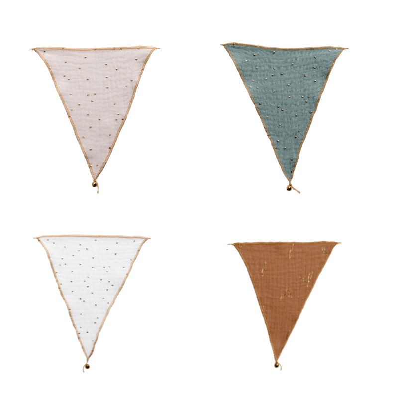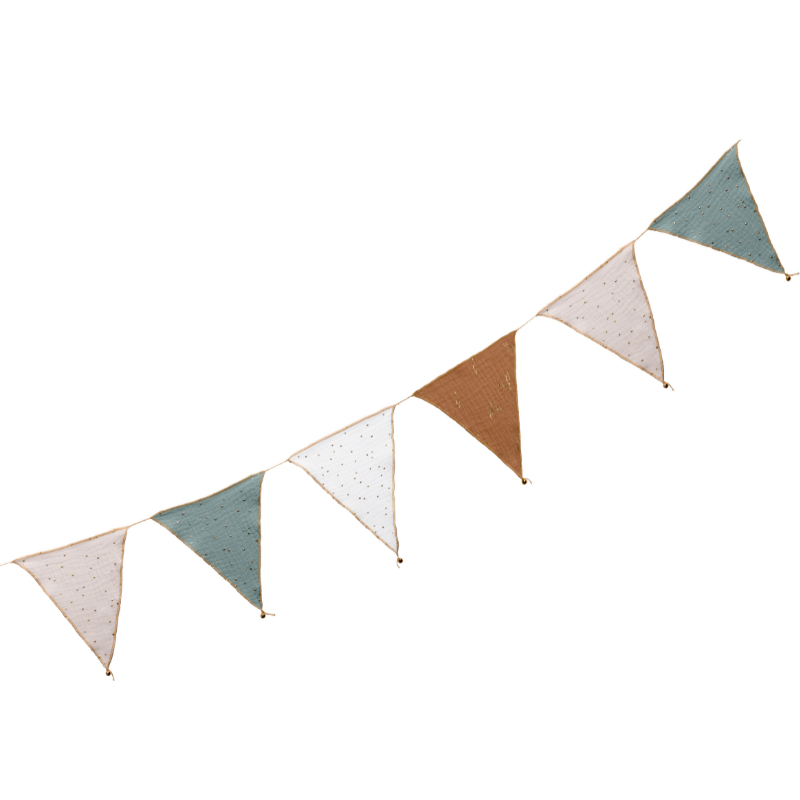 Denna vackra vimpelslinga med bedårande tygvimplar är den perfekta detaljen för din barnrumsinredning. Passar perfekt i barnrummet, eller ute i lekstugan eller varför inte när det är dags för födelsedagsfest.