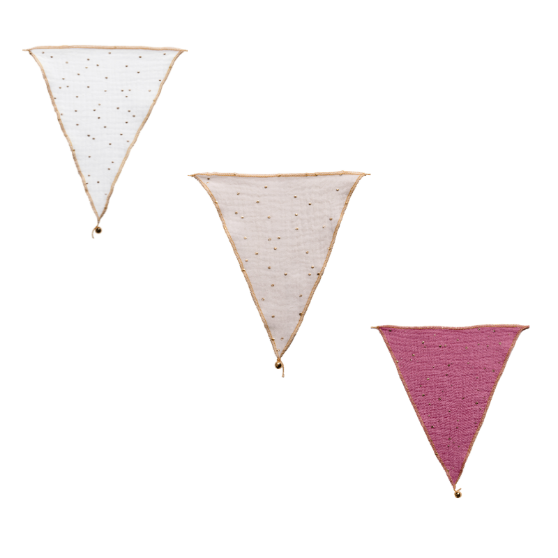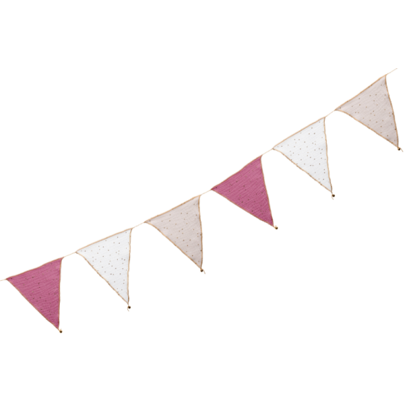Denna vackra vimpelslinga med bedårande tygvimplar är den perfekta detaljen för din barnrumsinredning. Passar perfekt i barnrummet, eller ute i lekstugan eller varför inte när det är dags för födelsedagsfest.