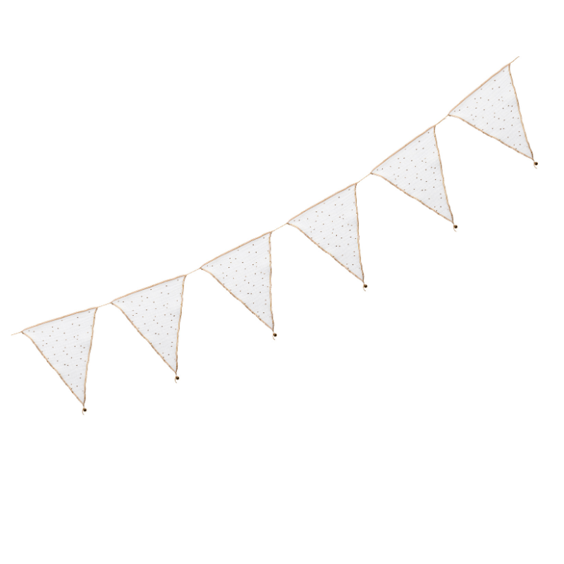 Denna vackra vimpelslinga med bedårande tygvimplar är den perfekta detaljen för din barnrumsinredning. Passar perfekt i barnrummet, eller ute i lekstugan eller varför inte när det är dags för födelsedagsfest.