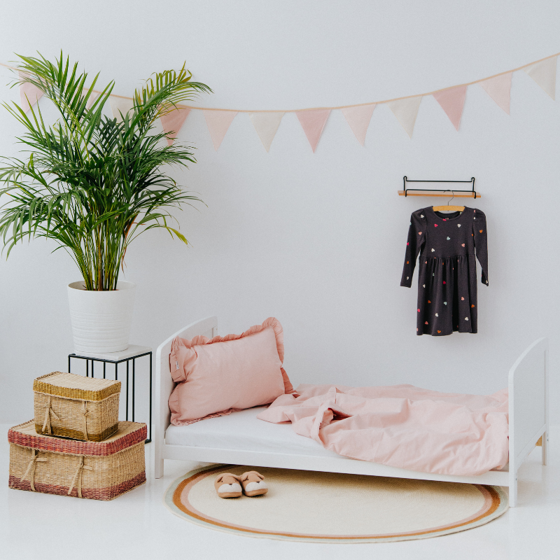 Spjälsängen är ställbar i två höjdlägen och har stängda gavlar som gör att sängen har tidlöst design och kommer att passa i varje barnrum.