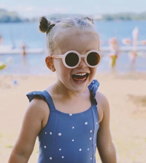 Det är ju viktigt att skydda även barnen från solens UV-strålar, något som man enkelt kan glömma bort en varm sommardag på stranden. Dessutom är barns ögon mer känsliga  för UV-strålning än för oss vuxna.