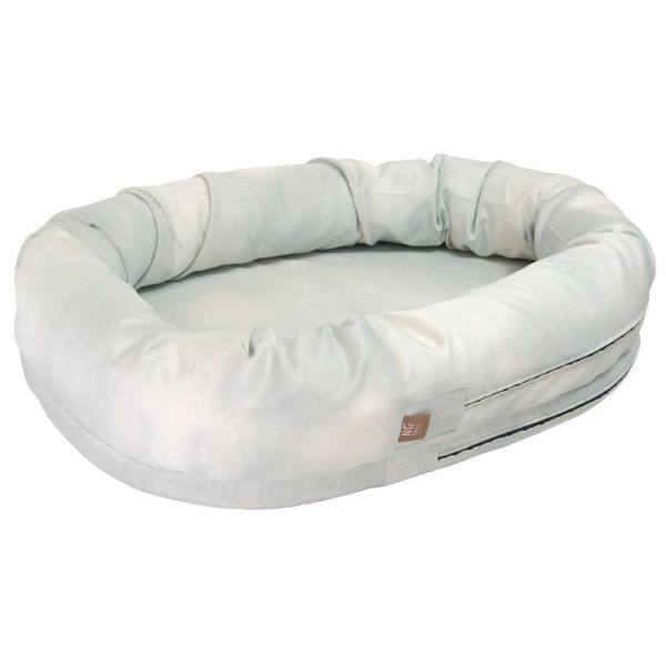 Då fyllningen i ytterringen är rörlig, kan du enkelt forma ett sittstöd, vilket gör att sittpölen blir ett bra ställe för ditt barn att leka på när det ska lära sig att sitta upp. Sovpölen är dessutom lätt att ta med sig var man än ska