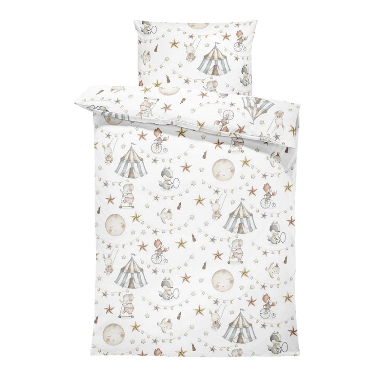 Med vackra cirkusdjur som motiv kommer detta bäddset också att passa väl in i din barnrumsinredning.