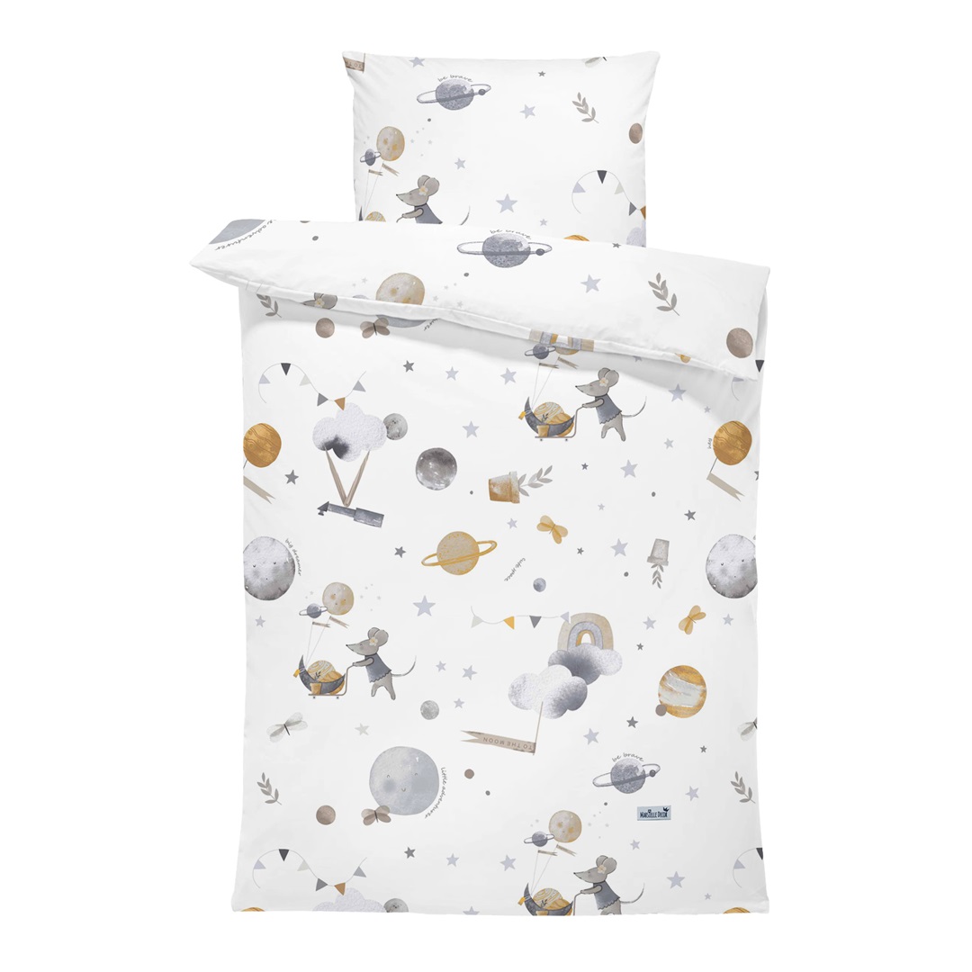Med vackert rymdmotiv kommer detta bäddset också att passa väl in i din barnrumsinredning.