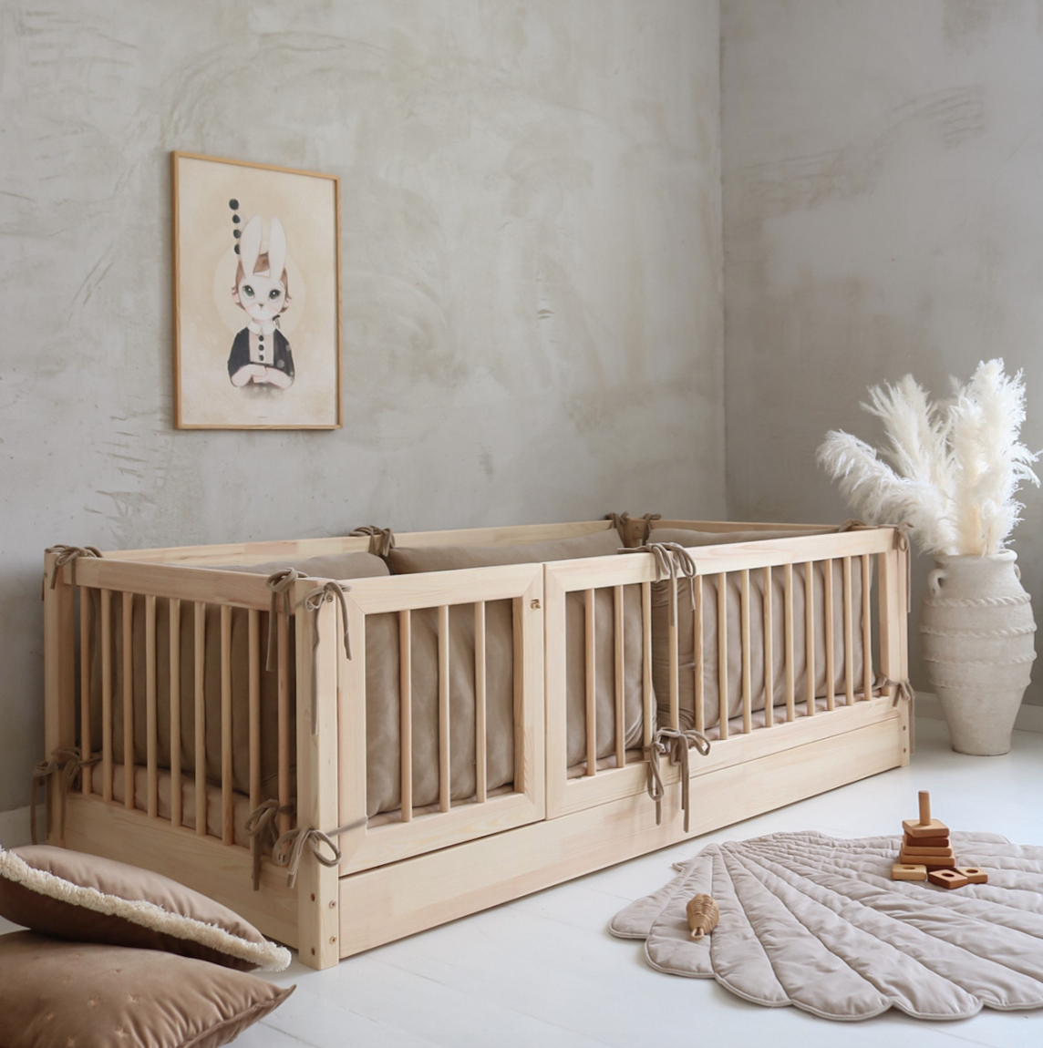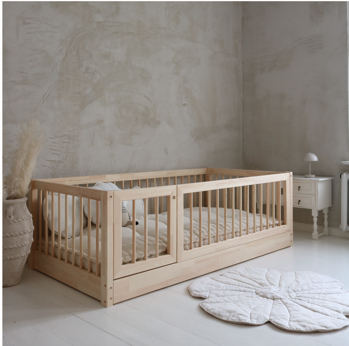 Öppningen till sängen underlättar för barnet att självständigt ta sig in och ut när den är öppen, samtidigt som den ger tryggt skydd och förhindrar att barnet rullar ut under natten. Du väljer själv på vilken sida öppningen ska sitta och anger detta i textfältet på produktkartan