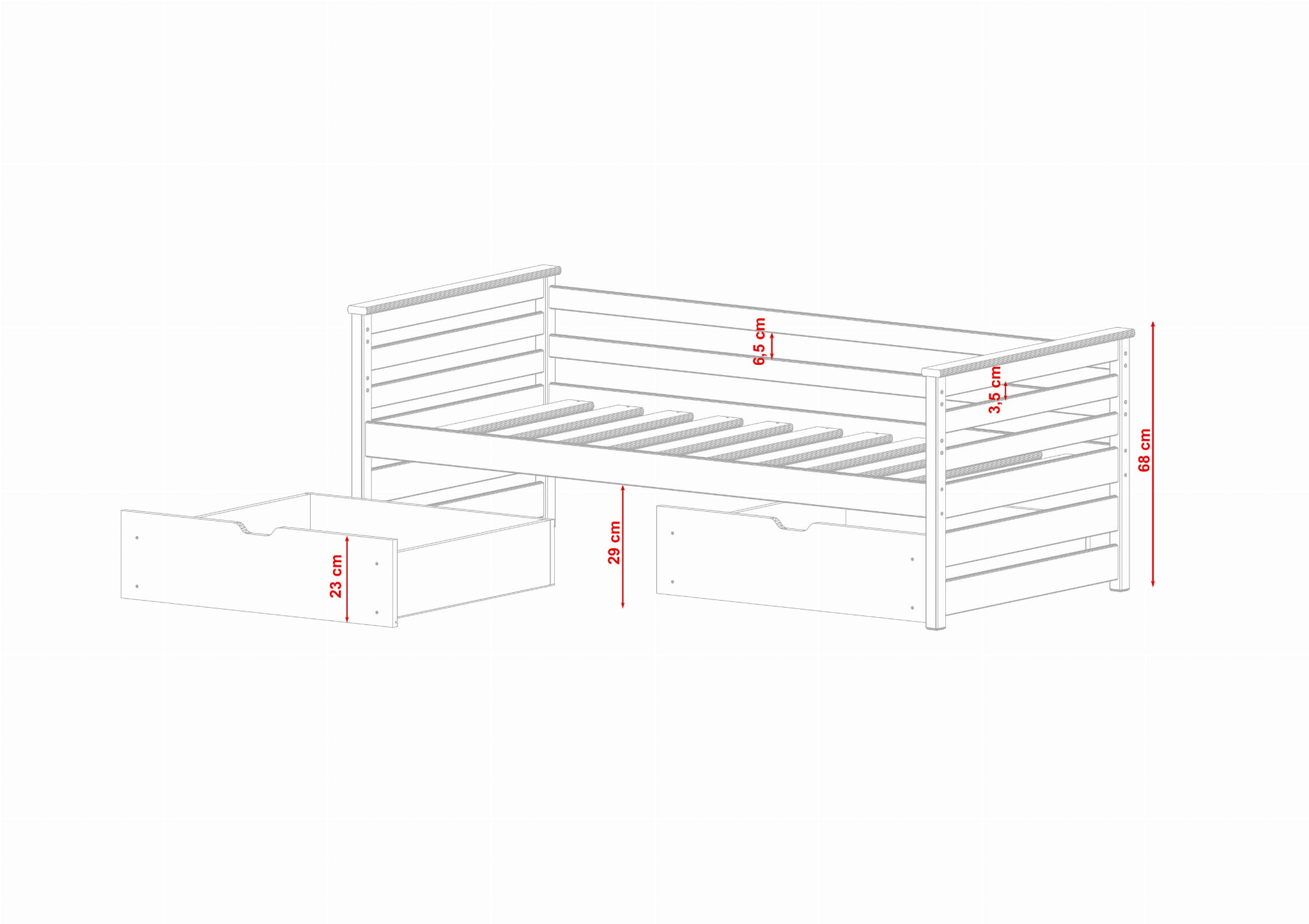 Madrass ingår ej, men kika gärna i vårt stora madrassutbud. Vi rekommenderar en skummadrass med tjocklek på ca 10-12 cm.