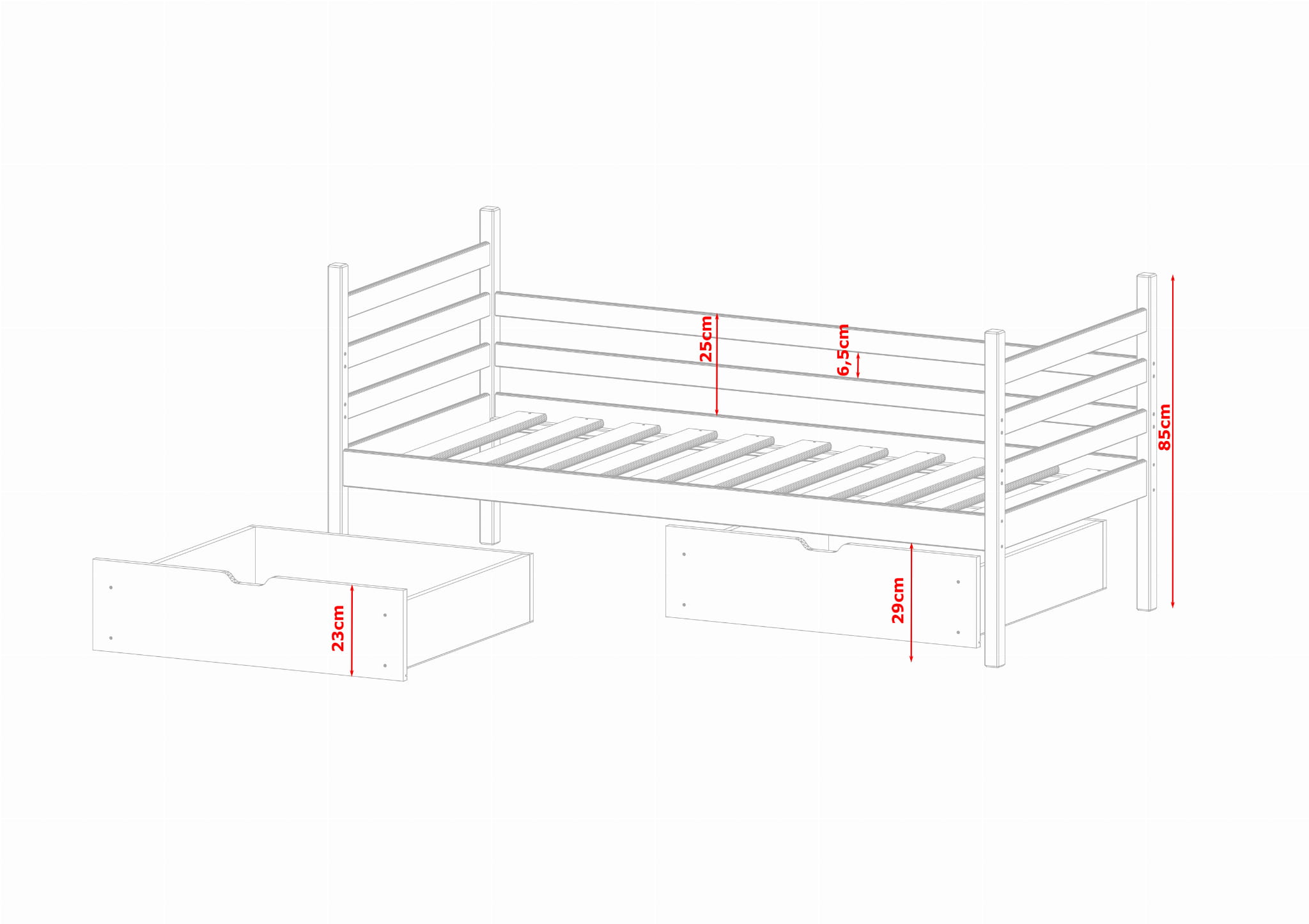 - Sängens totala höjd: 85 cm.
