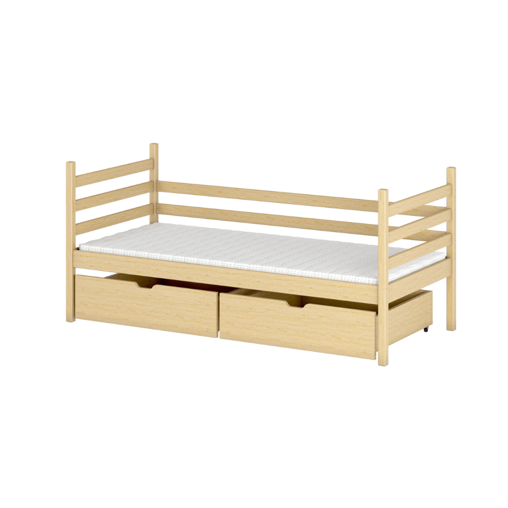 Sängarna tillverkas enligt standarden EN-747-1: 2012 + A1: 2015 i vår fabrik i Europa som har de högsta säkerhetsstandarderna för produktion av barnsängar. och kontrollerar varje steg från det att timret kommer in i fabriken till att en färdig produkt lämnar. Sängarna lackeras tre gånger med ekologisk, miljövänlig och vattenbaserad färg som följer normen EN 71-3:2019.