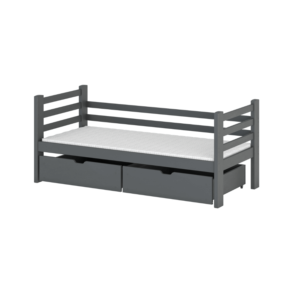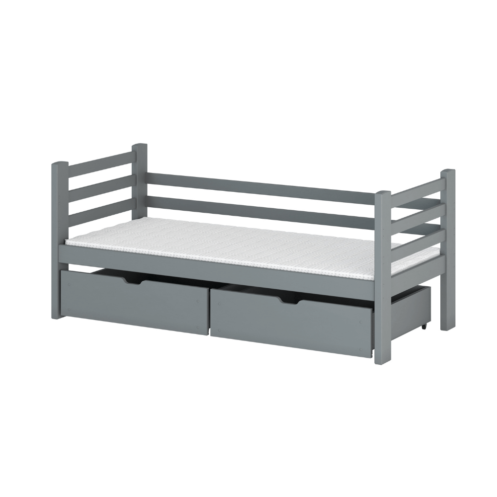 - Färg: välj mellan natur (lackad), vit, grå och antracit. Alla sängar i natur är behandlade med vattenbaserat lack. Lämna en kommentar i kassan om du önskar en naturfärgad säng som är obehandlad.
