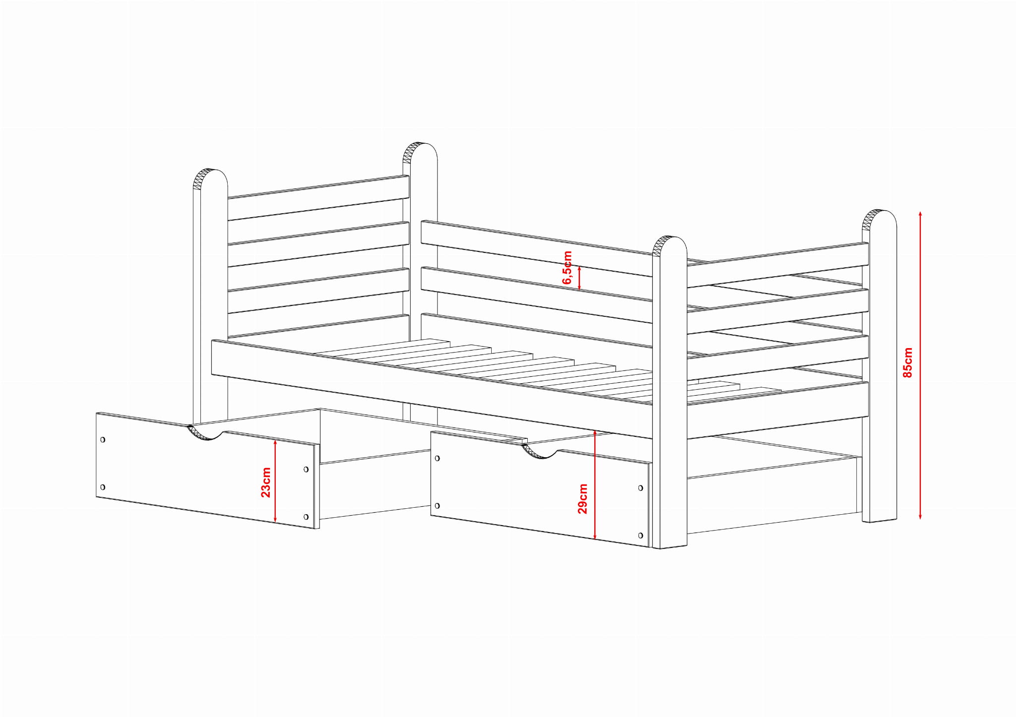 - Sängens totala höjd: 85 cm.