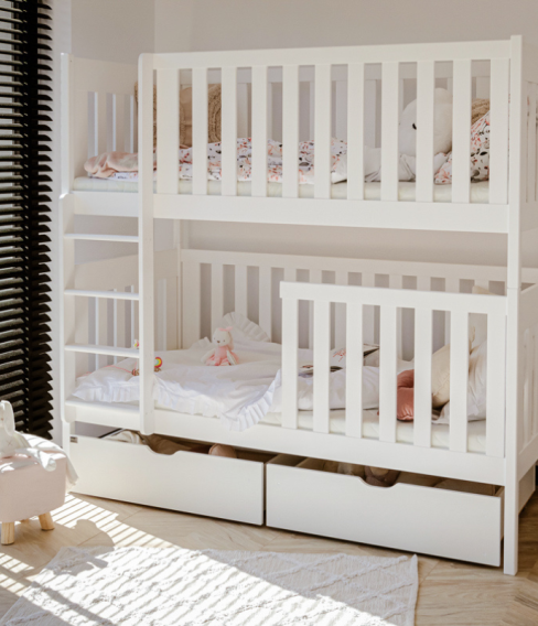 Sängarna tillverkas enligt standarden EN-747-1: 2012 + A1: 2015 i vår fabrik i Europa som har de högsta säkerhetsstandarderna för produktion av barnsängar. och kontrollerar varje steg från det att timret kommer in i fabriken till att en färdig produkt lämnar. Sängarna lackeras tre gånger med ekologisk, miljövänlig och vattenbaserad färg som följer normen EN 71-3:2019.