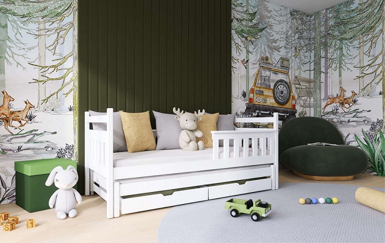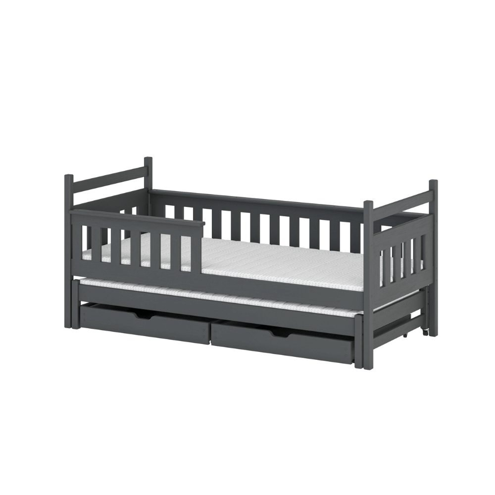 En fantastiskt fin barnsäng med en praktisk extrasäng undertill som du enkelt tar fram vid behov. Perfekt som en syskonsäng eller om en kompis vill sova över.