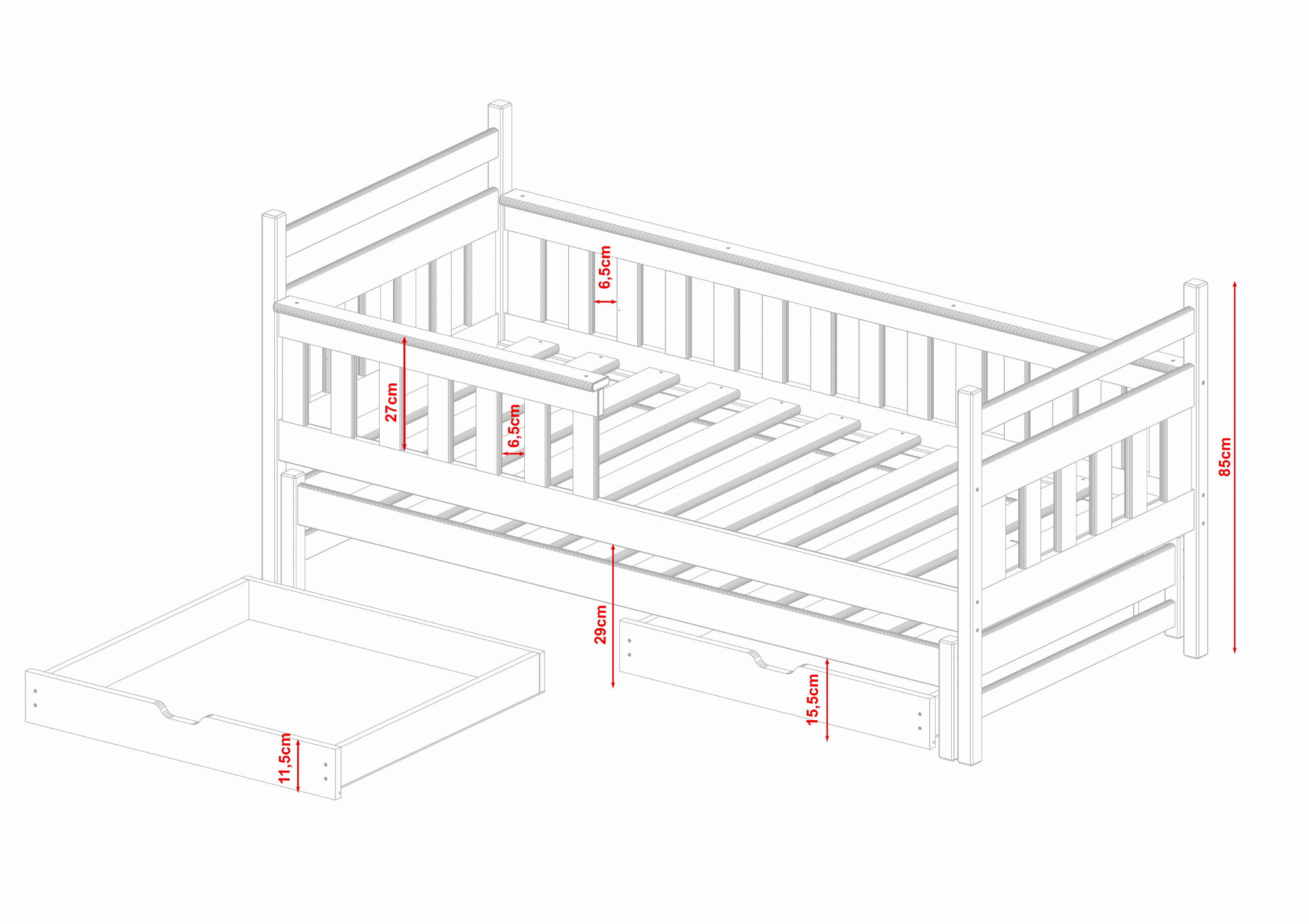 • Stödbräda höjd när den är monterad: 27 cm. Avstånd mellan spjälor 6,5 cm.