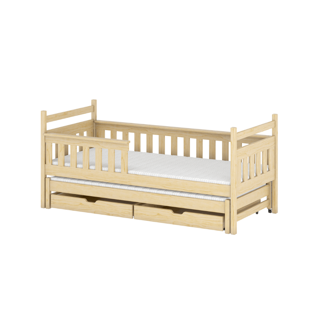 En fantastiskt fin barnsäng med en praktisk extrasäng undertill som du enkelt tar fram vid behov. Perfekt som en syskonsäng eller om en kompis vill sova över.En stabil och gedigen barnsäng i tidlös design, som inte bara är en mysig sovplats, utan även en klockren inredningsdetalj i barnrummet! Sängen är gjord av massiv furu vilket gör den stabil och rejäl. Idealisk att både leka som sova…