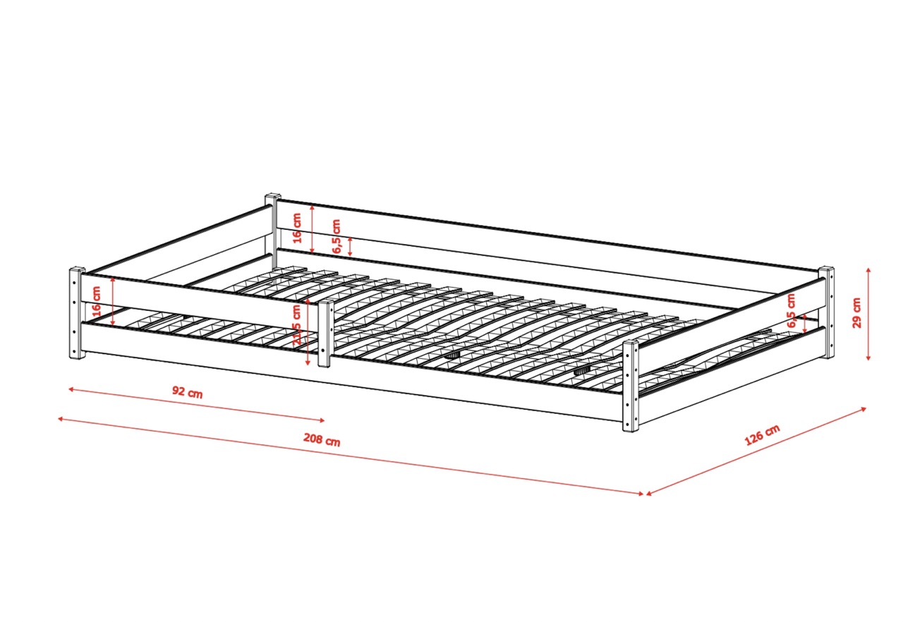 - Sängens totala dimensioner: 126×208 cm