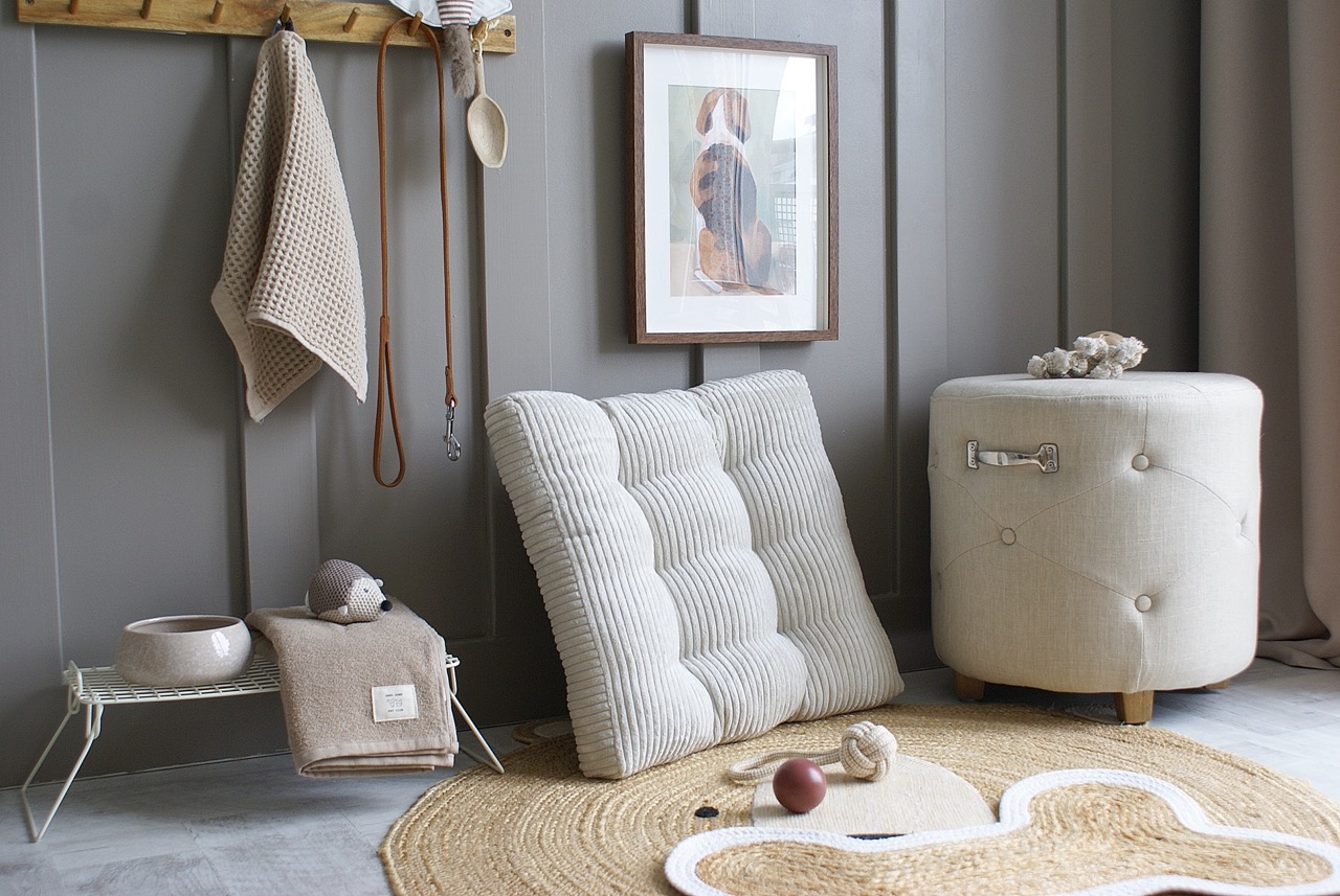 Denna eleganta kudde, tillverkad av högkvalitativ manchester, ger ditt husdjur komfort med sin hypoallergena fyllning av skum och silikonbollar.