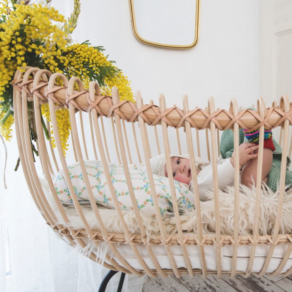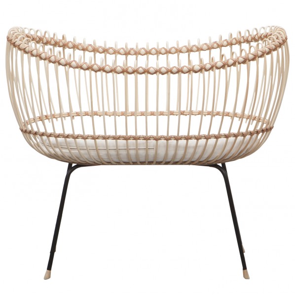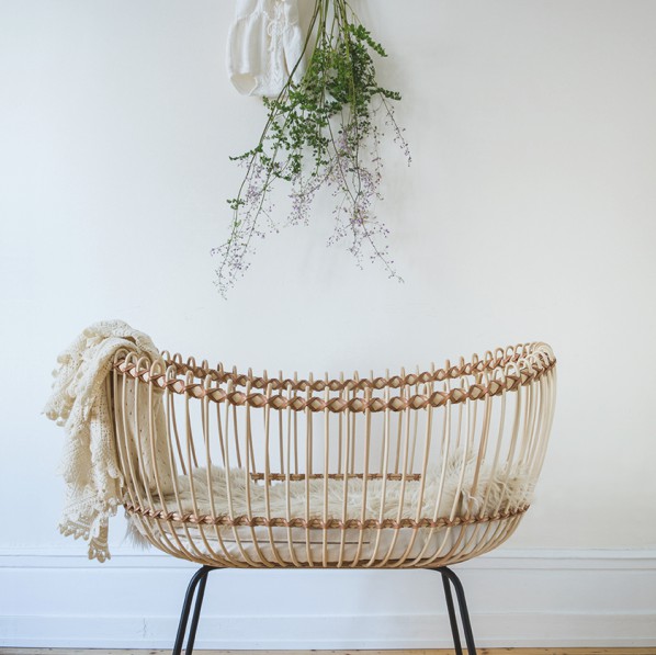Ett designunderverk! Denna fantastiska babysäng gjord i rotting, är ett konstverk i sig och en produkt utöver det vanliga. Till att börja med är den helt gjord för hand och designad av tyska företaget Bermbach. Samtidigt som sängen är luftig i designen, är den stabil och robust tack var de smarta läderremmarna. Med en metallram runt blir den extra stabil samtidigt som de fina fötterna på benen, är gjorda av trä och skyddar golvet i barnrummet.