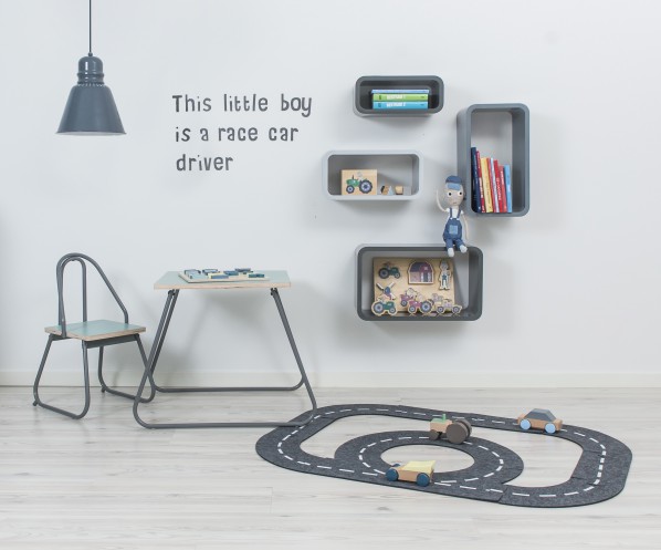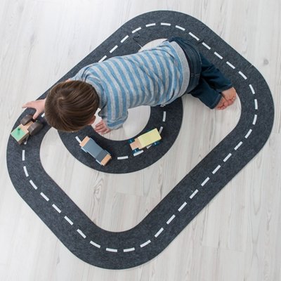 En fantastisk, vändbar bilbana från Sebra gjord av kraftig filt. Med denna tvåfiliga lekmatta kommer du att skapa en häftig och inspirerande miljö för ditt barnrum. Ditt barn sätter enkelt ihop delarna själv, och kan därigenom skapa sina egna och unika bilbanor. Detta är tanken med denna bilbana, att stimulera och uppmuntra barnens kreativitet och lek. Samt därigenom stimulera barnets utveckling…