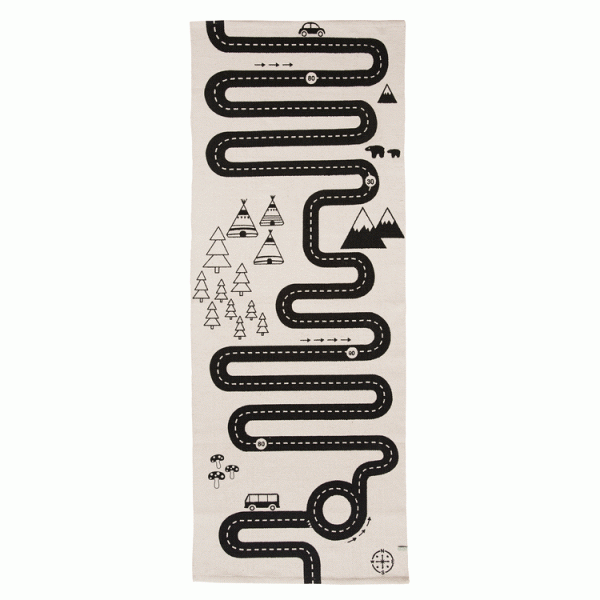 Denna fantastiska bilbanmatta är en storsäljare över hela världen. Utbudet av bilmattor är stort men sällan har man lyckats kombinera detta med en vacker design. Denna bilmatta är den ultimata när det handlar om att inreda barnrummet. Bilmattan, med namnet Adventure Rug, är svartvit och innehåller en cool bilbana som slingrar sig genom hela mattan. Allt för att barnet ska kunna leka länge med denna. Bilmattan är såväl snygg som lekfull och gjort i ett kraftigare tyg vilket gör att mattan inte flyttar sig när den ligger på golvet.