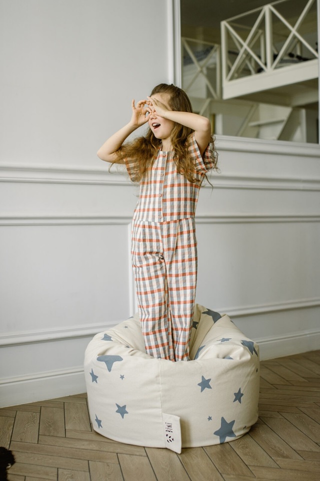 Bini är en mycket skön saccosäck som har designats med stor omsorg, för att ditt barn ska kunna sitta på den, ligga på den eller även leka på den. Den är gjord av organisk foglig bomull, som är mycket behaglig och skön. Den görs för hand i Europa och materialet har inte utsatts för några kemiska processer och innehåller inget silikon. Trycket är vattenbaserat med en speciell screen-tryck metod.