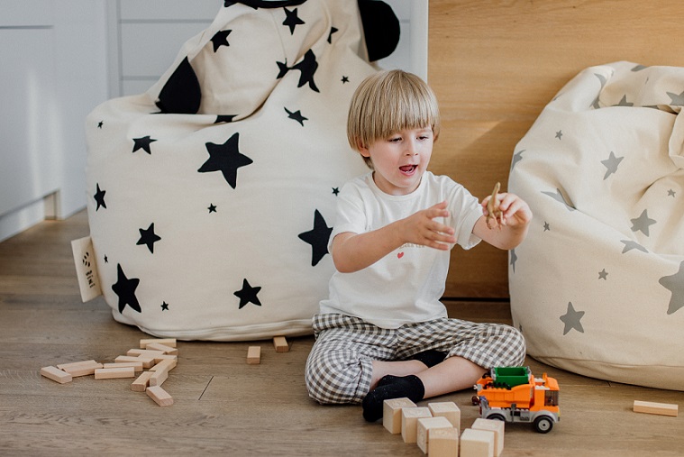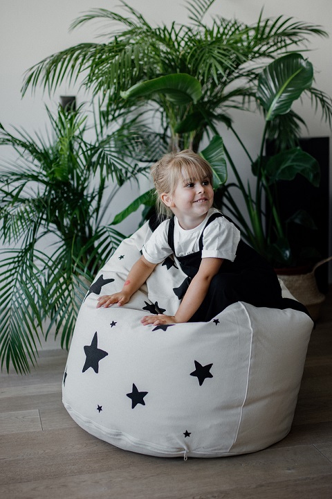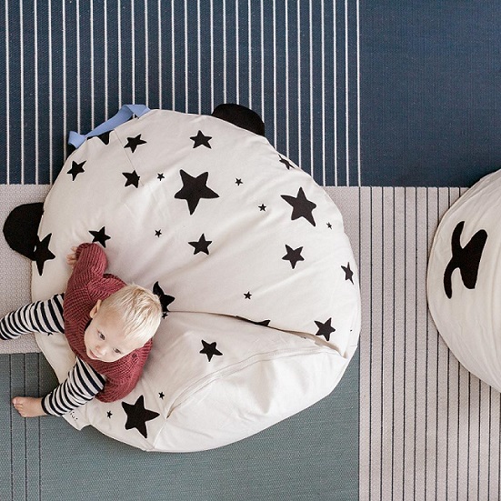 Bini är en mycket skön saccosäck som har designats med stor omsorg, för att ditt barn ska kunna sitta på den, ligga på den eller även leka på den. Den är gjord av organisk foglig bomull, som är mycket behaglig och skön. Den görs för hand i Europa och materialet har inte utsatts för några kemiska processer och innehåller inget silikon. Trycket är vattenbaserat med en speciell screen-tryck metod.