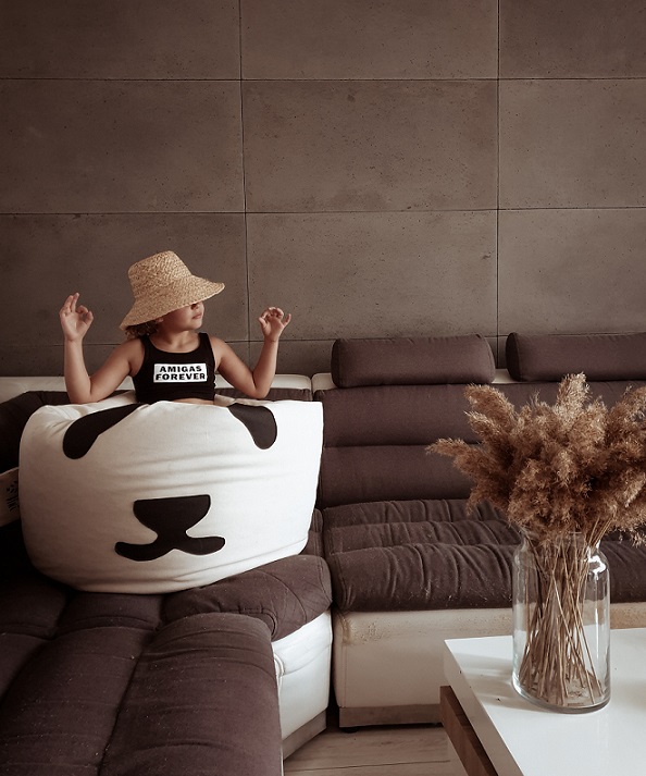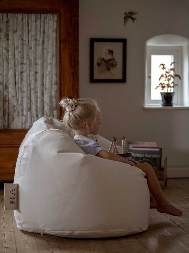 Bini är en mycket skön saccosäck som har designats med stor omsorg, för att ditt barn ska kunna sitta på den, ligga på den eller även leka på den. Den är gjord av organisk foglig bomull, som är mycket behaglig och skön. Den görs för hand i Europa och materialet har inte utsatts för några kemiska processer och innehåller inget silikon. Trycket är vattenbaserat med en speciell screen-tryck metod.