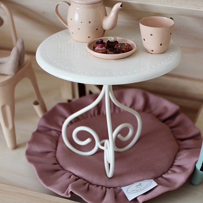 Blush rund matta med volang till dockhuset, Cotton&Sweets