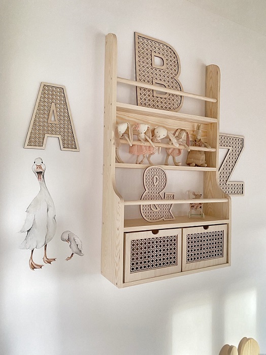 Du väljer själv om du önskar ha bokhyllan i natur eller i andra färger. På det sättet kan du anpassa vägghyllan helt efter inredningen i just ditt barnrum.