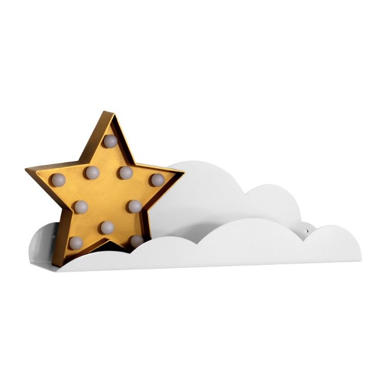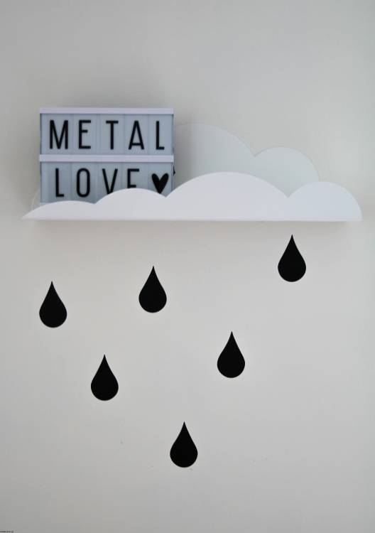En molnbokhylla är såväl en vacker dekoration på bäggen i barnrummet, som en praktisk inredningsdetalj.Ställ upp barnets gossedjur, deras favoritböcker eller något semesterminne. Mått: Längd 50 cm, djup 13 cm och höjd 15 cm. Hyllan finns i vit färg och är helt gjord i stål.