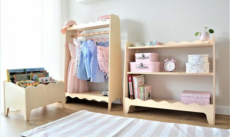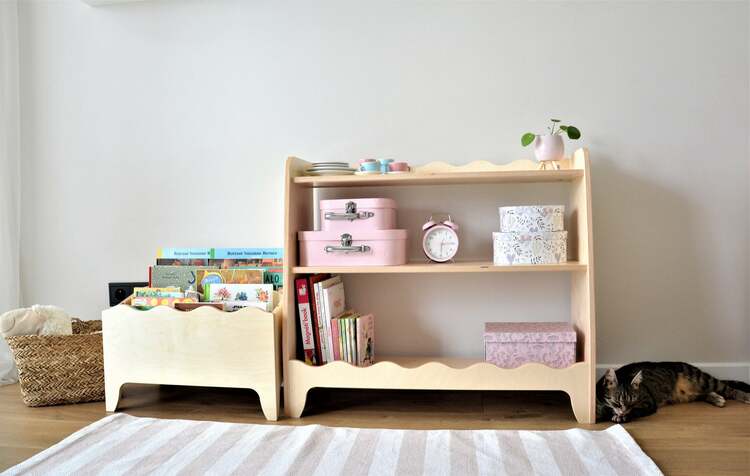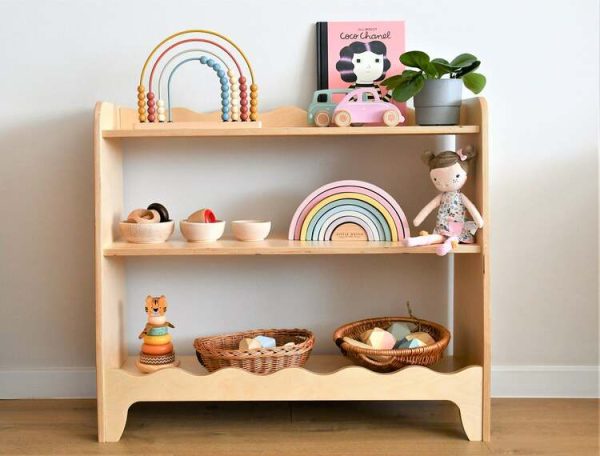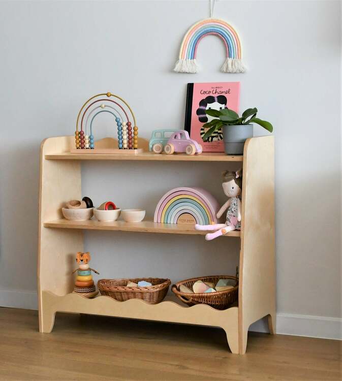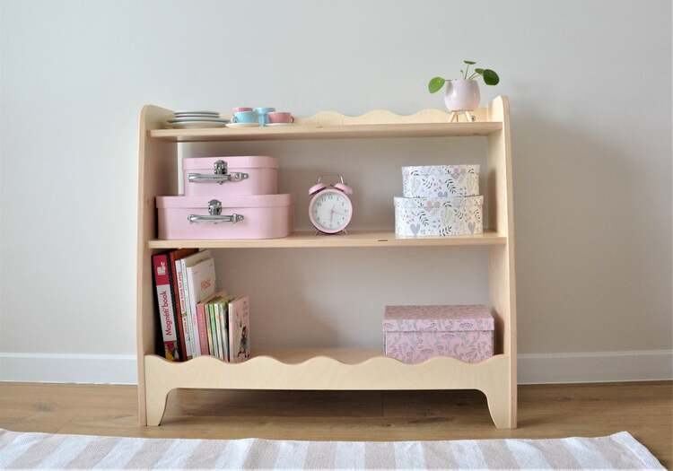 En praktisk och fin bokhylla . I den här kan du enkelt förvara inte bara böcker utan även favorita leksaker.