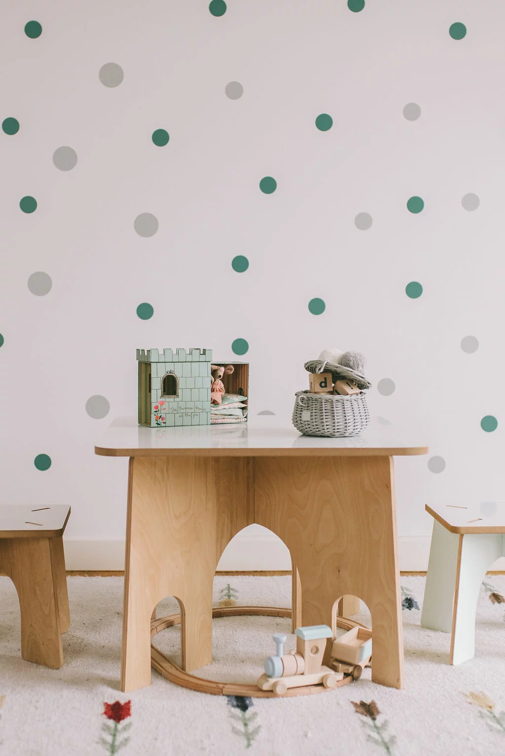 My Mini Home är experter på att skapa vackra barnmöbler!Ditt barn kommer garanterat att många bra stunder vid detta bord, där det kan sitta och pyssla eller måla så snart de så önskar. Bordet passar perfekt ihop med pallen och stolar från samma serie! Gjord för hand utav plywood från certifierade skogspartier och målad i miljövänliga giftfria färger. Info: Färgval: vit, ljusblå,…