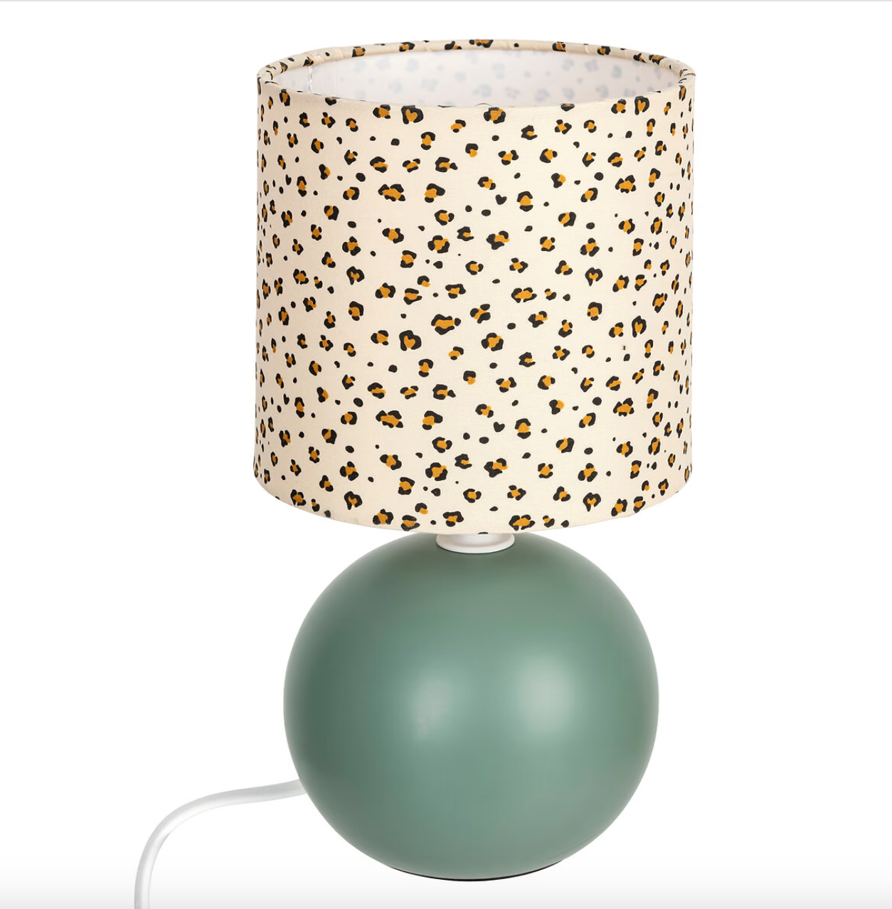 En underbar grön bordslampa med söt leopard motiv på som kommer att ge barnrummet en speciell charm.