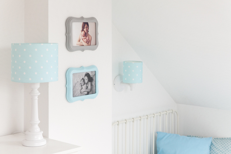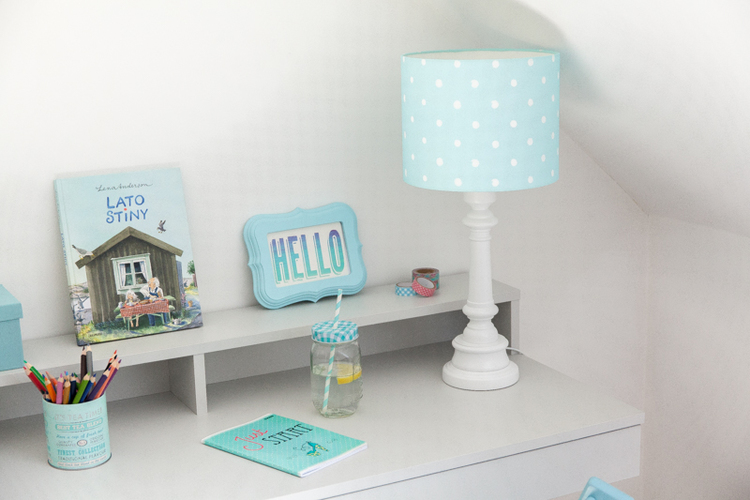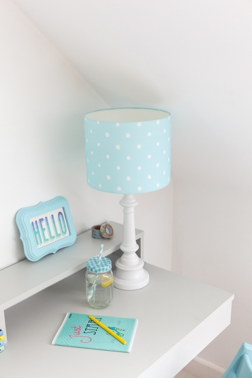 En underbar mint bordslampa till barnrummet med ett motiv av söta prickar.
