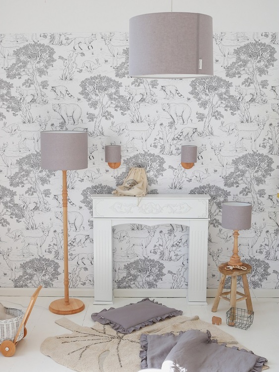 Bordslampan har fin grå färg och kommer att ge barnrummet en speciell charm.