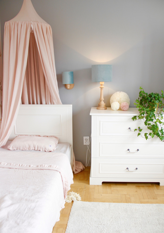 Bordslampan har fin mint färg och kommer att ge barnrummet en speciell charm.