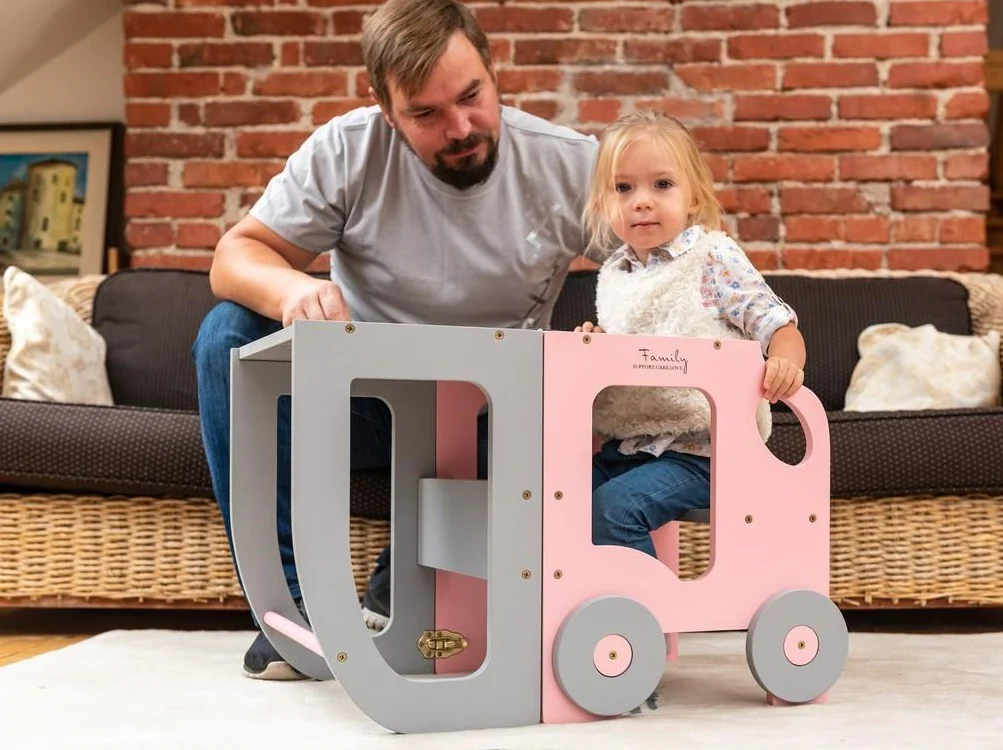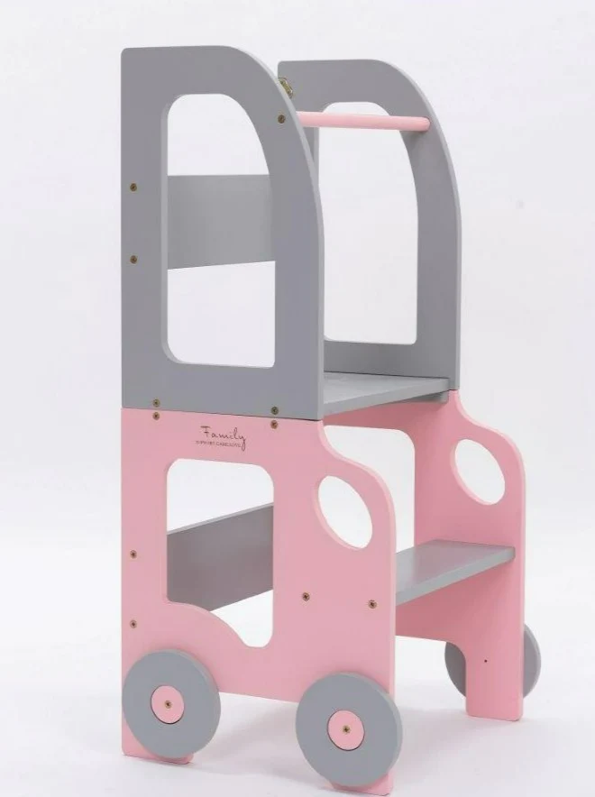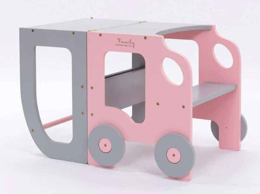 Byggbar kökspall bil, rosa/grå