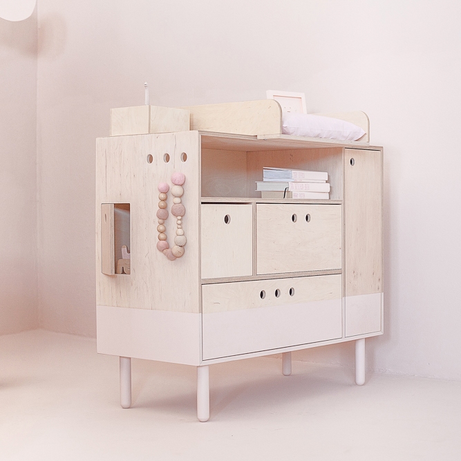 Du kan dessutom köpa till en speciell överdel till byrån för att skapa dig ett perfekt skötbord. Du kan själv justera om du vill ha det i mitten eller till höger/vänster.