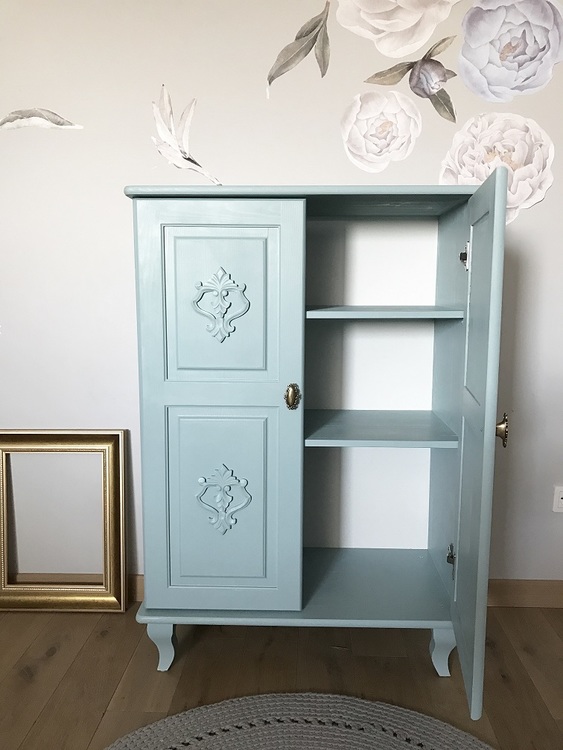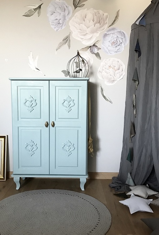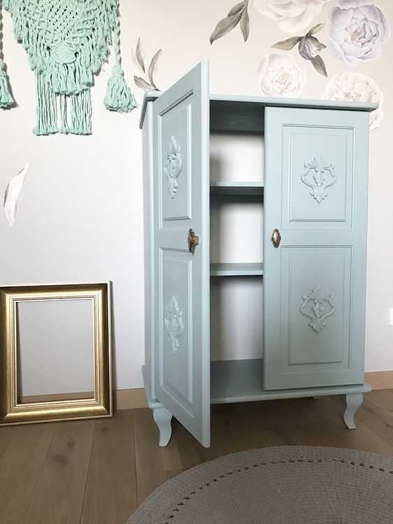 En fantastisk dusty blue byrå eller fint skåp till barnrummet, med denna underbara möbel i antik stil kommer du lyfta din barnrumsinredning till himmelska höjder.