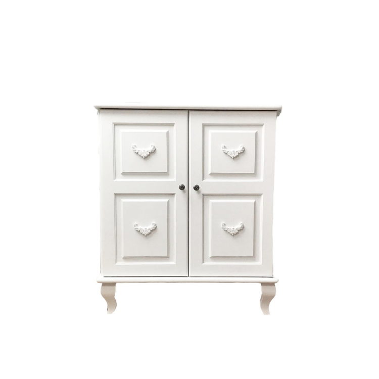 Skåpet är helt gjort för hand i en gammaldags antik stil av och är helt gjort av massiv furu, familjeföretaget som gör dessa använder ingen snabba genvägar. De böjda träbenen är mycket vackra och skapar en extra charm och magi, och tillsammans med den fina mönstren på dörrarna och knopparna i slitet guld alternativt silver skapar den ett helhetsintryck som alla kommer att tycka om.