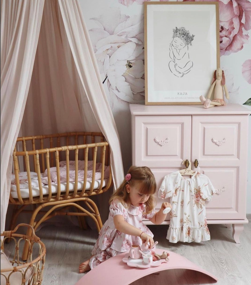 En fantastisk byrå eller fint skåp till barnrummet, med denna underbara möbel i antik stil kommer du  lyfta din barnrumsinredning till himmelska höjder.  Lillasystern till byrån Charlotte som vi också erbjuder.
