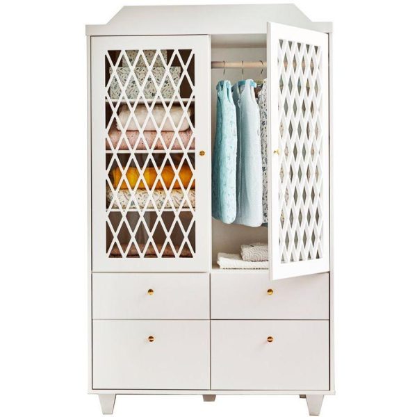En superfin och elegant garderob till barnrummet från danska Cam Cam. Garderoben har dubbeldörr och fyra praktiska lådor i botten.