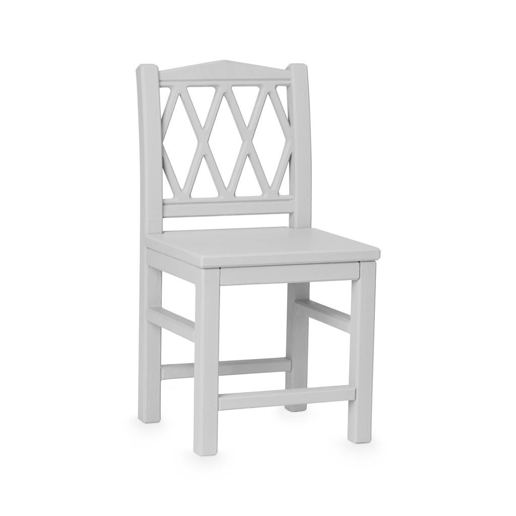 De stilrena, utskurna rombmönster i stolsryggen fyller även en praktisk funktion då du enkelt kan lyfta stolen. Ditt barn kommer garanterat att få många bra stunder på denna stol, där det kan sitta och pyssla eller måla.