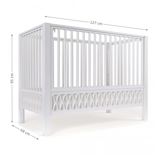 Madrasshöjden är justerbar i i 3 olika höjder. Sidopanelen kan avlägsnas med 2 barnsäkra tryckknappar. På den nya förbättrade designen syns inga skruvar på utsidan av spjälsängen och sängsidorna kommer förmonterade för ännu enklare sängmontering hemma.