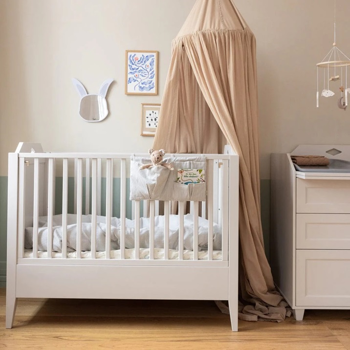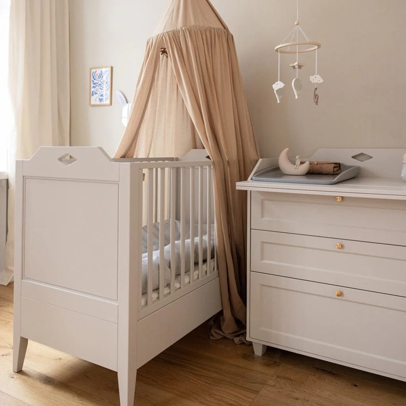 En elegant och stilren spjälsäng i Luca-design från det danska Cam Cam Copenhagen.