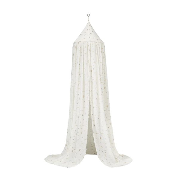 En mycket charmig sänghimmel tillverkad av organisk bomull. I varje rum som denna används kommer en sagokänsla att spridas. Perfekt för att inreda barnrummet på ett bra sätt. För att montera sänghimmeln behöver man bara en liten krok som man fäster i taket och sen hänger upp sänghimmeln på den.