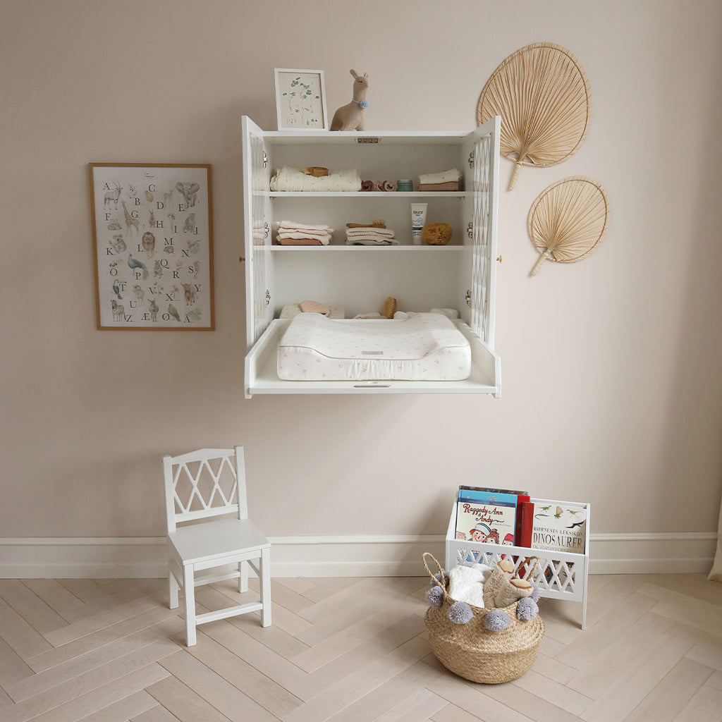 Ett superfint och elegant vägghängt skötbord till barnrummet från danska Cam Cam. Oerhört vacker möbel som kommer bidra mycket till din barnrumsinredning.
