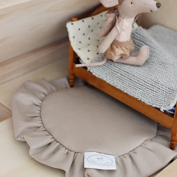 Cappuccino rund matta med volang till dockhuset, Cotton&Sweets