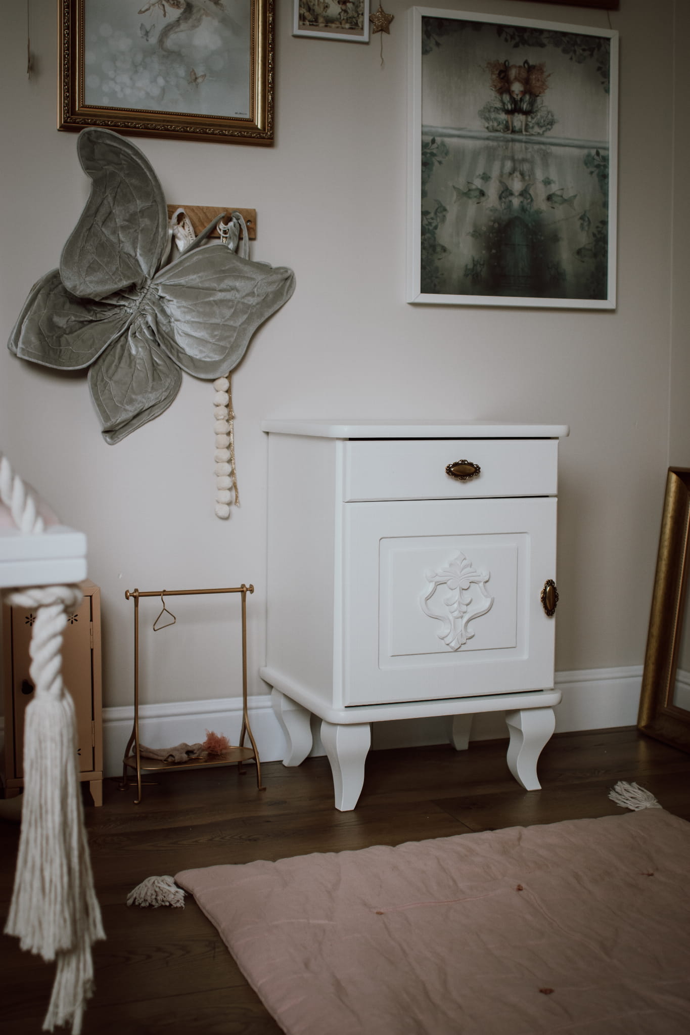 En fantastisk sängbord till barnrummet, med denna underbara möbel i antik stil kommer du att lyfta din barnrumsinredning till himmelska höjder!